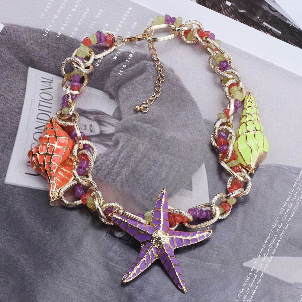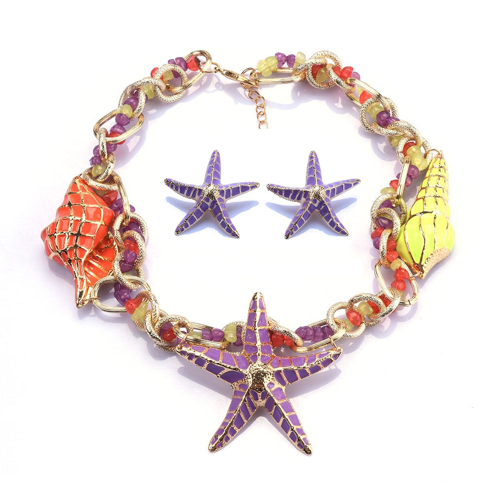 TEEK - Starfish Shell Charm Choker Necklace Set