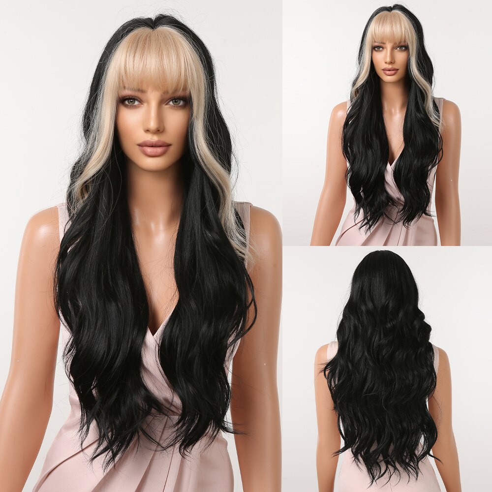 Synth Bang Long Wavy Wigs is the perfect accessory to add style and texture to any look. Made with high temperature fiber and synthetic, these wigs are designed for daily use and can withstand everyday styling. The average size cap fits most, and the wavy synthetic fiber is can be permed and adapted to most looks. Get yours delivered in 14-18 days!
