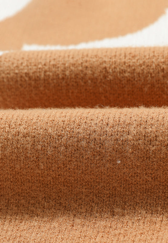 TEEK - Tan Contrast Flower Mock Neck Long Sleeve Sweater