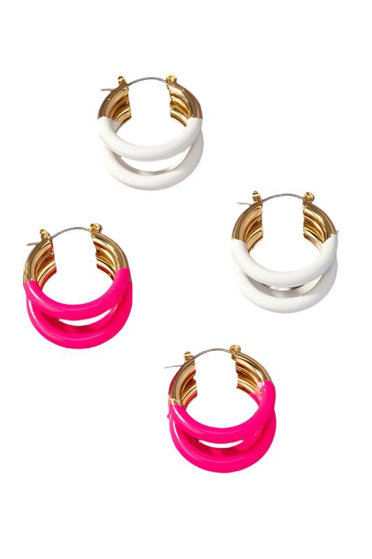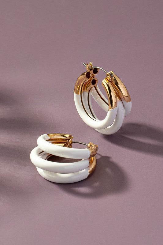 These triple layer tube hoop earrings come with a shiny enamel coating and are available in a size of 1.0". With a delivery time of 6-10 days, you can have these stylish earrings in no time.