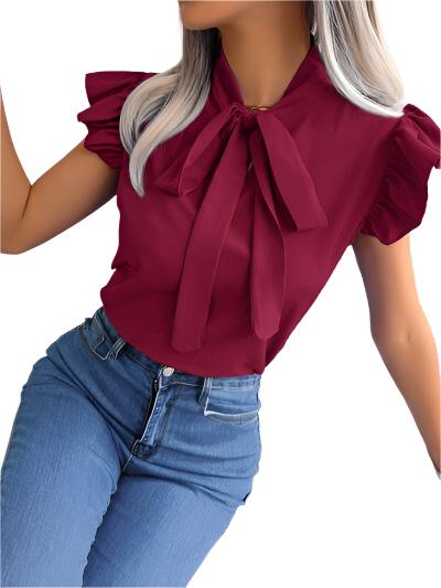 TEEK - Tina Tie Cap Ruffle Sleeve Blouse