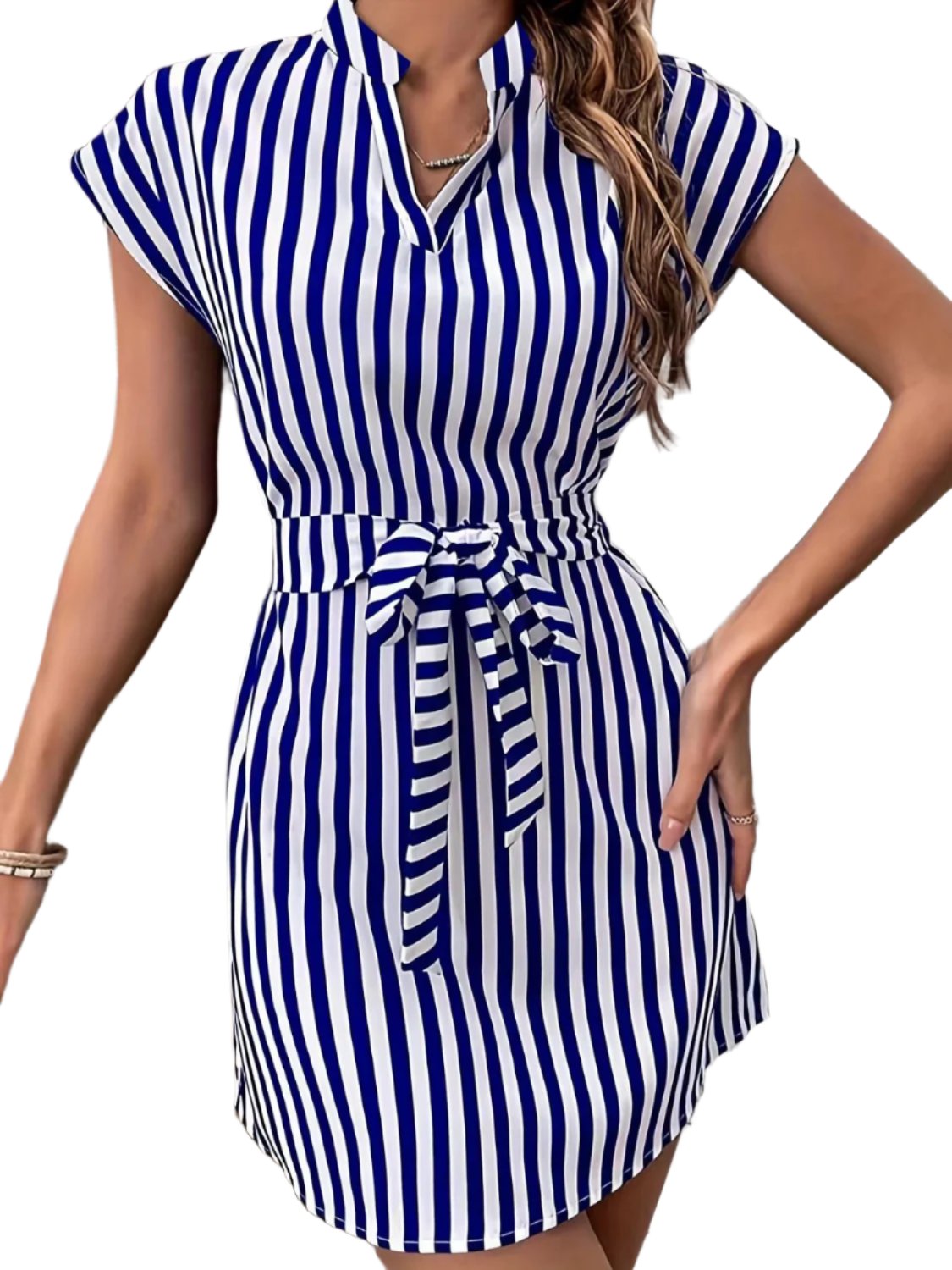 TEEK - Tied Striped Cap Sleeve Mini Dress