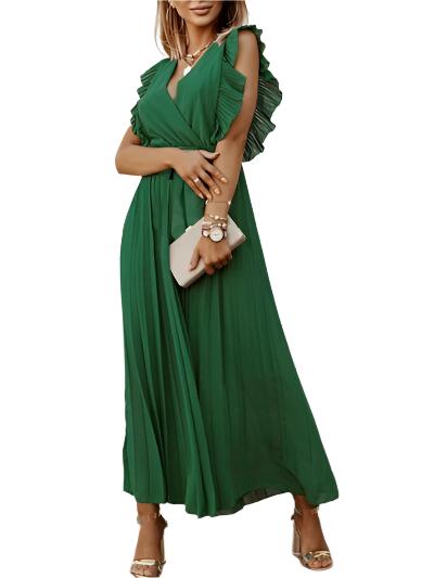 This Tied Surplice Cap Sleeve Pleated Dress offers a sleek, opaque design that is perfect for any occasion. Made with 95% polyester and 5% spandex, it provides a comfortable and breathable fit. The tie and pleated details add elegant touches to this dress, making it a must-have in your wardrobe. Machine washable and delivered within 6-12 days.