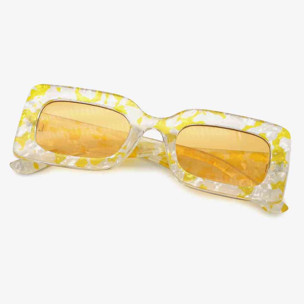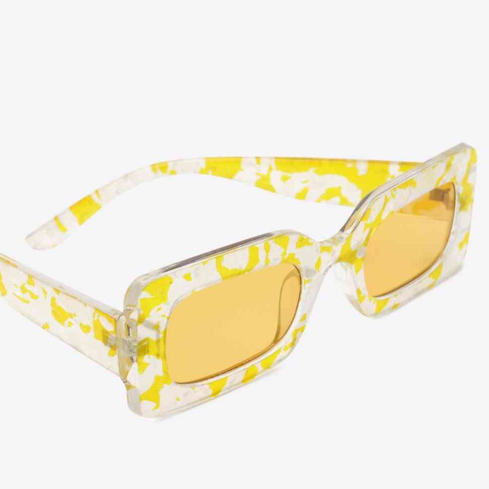 Add a touch of quirkiness to your wardrobe with these Tortoiseshell Rectangle Polycarbonate Sunglasses. Protect your eyes from harmful UV rays (UV400) while looking stylish. Comes with a case for easy storage. Delivered in just 6-12 days!