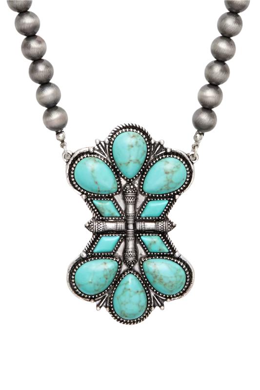 TEEK - Turquosie Squash Blossom Pendant Beads Necklace