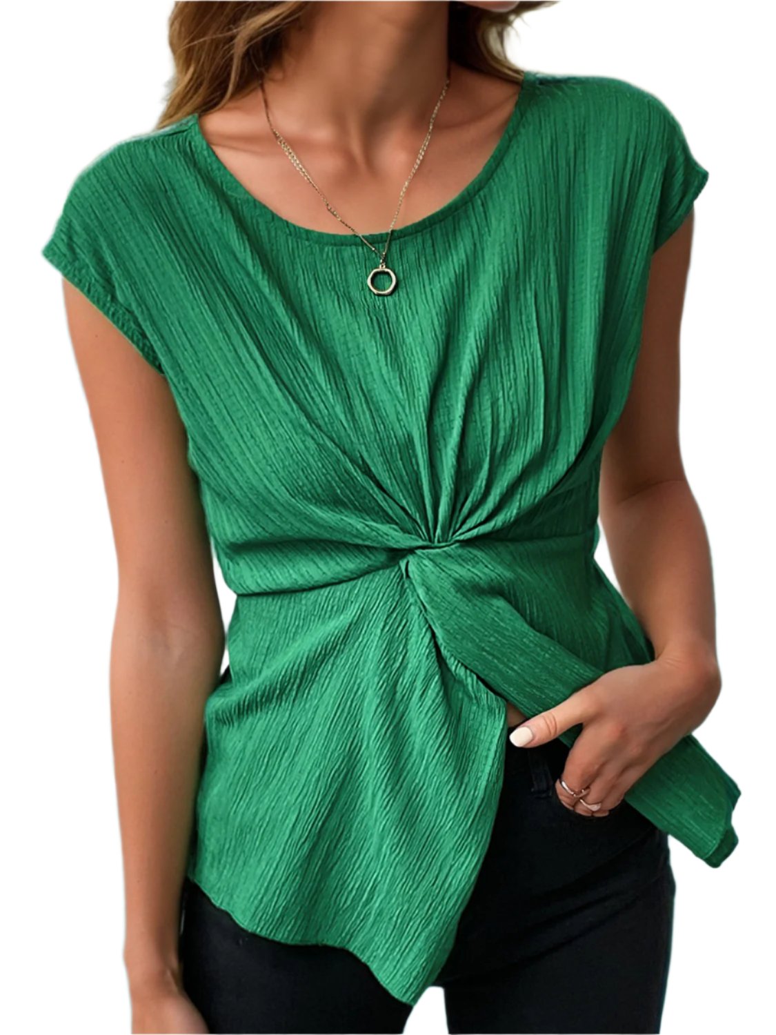 TEEK - Green Twisted Cap Sleeve Blouse