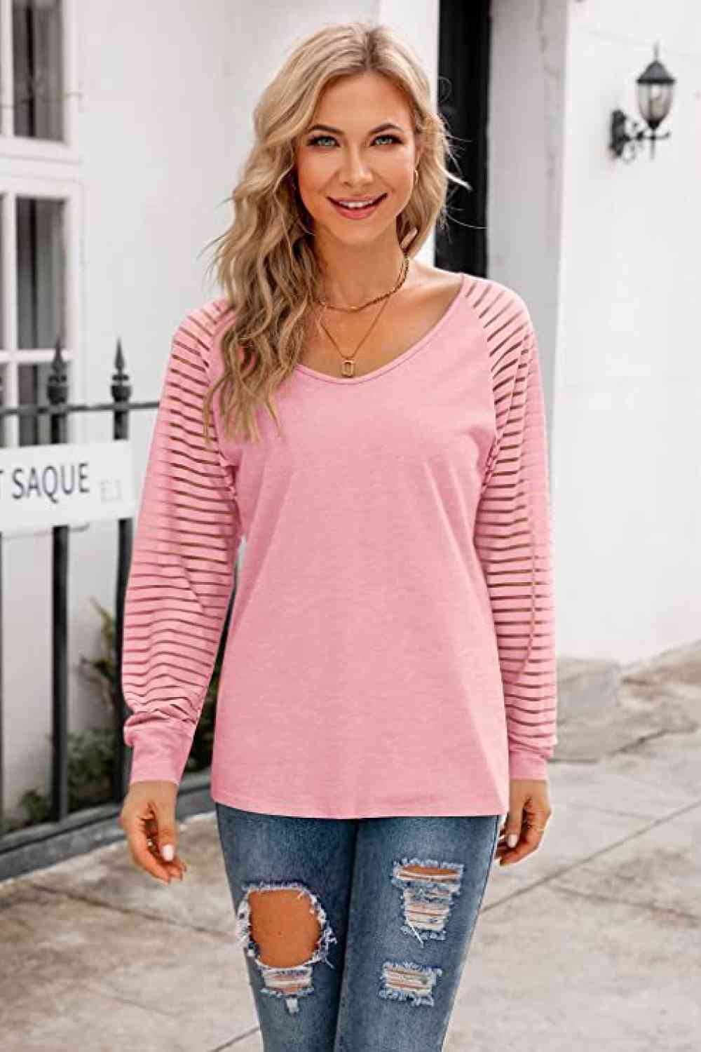 This V-Neck Long Raglan Sleeve Top is the perfect casual piece to add to your wardrobe. It features a comfortable, stretchy blend of 95% rayon and 5% spandex and a classic V-neck and long raglan sleeves. Soft and lightweight, this regular-length top is easy to match and machine washable for hassle-free care. Delivery is within 6-12 days.